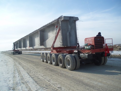 運(yùn)梁車是為公路橋梁架設(shè)專門設(shè)計(jì)的預(yù)制梁運(yùn)輸機(jī)械。 輪胎式運(yùn)梁平車主要適用于預(yù)制梁場(chǎng)與架橋工地較遠(yuǎn),不適合鋪軌或鋪軌費(fèi)用較高的場(chǎng)合。運(yùn)梁車的剎車系統(tǒng)對(duì)縱坡有較大的適應(yīng)性。輪胎與地面摩擦阻力比軌道式運(yùn)梁車有顯著的優(yōu)勢(shì)。本車具有載重量大、自行式、運(yùn)輸不受距離***。性能可靠,安全設(shè)施齊全,整機(jī)結(jié)構(gòu)合理,運(yùn)轉(zhuǎn)平穩(wěn)操作舒適,維修方便,抗傾覆穩(wěn)定性好,生產(chǎn)效率高等特點(diǎn)。